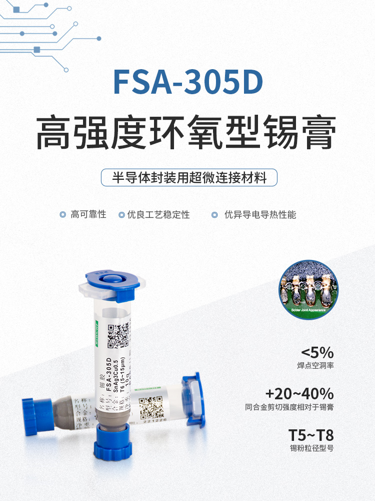 環(huán)氧樹脂錫膏,焊點加固,絕緣性加強,適用微間距,工藝簡化提升效率,包括規(guī)模商用的 6號粉、7號粉、8號粉,以及尖端應用9號和10號粉